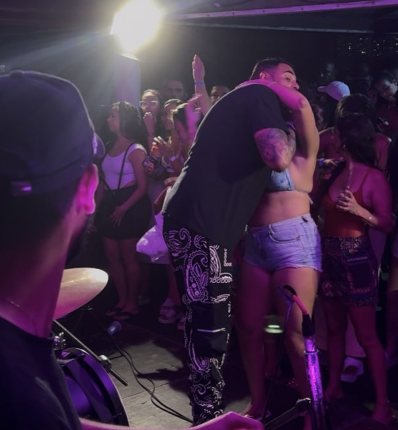 O cantor Cacau Júnior viveu um momento inusitado em sua última apresentação, no Samba da Praia, na Barra da Tijuca, Zona Oeste do Rio de Janeiro. Durante o show, uma fã empolgada conseguiu subir ao palco e o agarrou com tanta força que ele chegou a quase ficar sem ar.