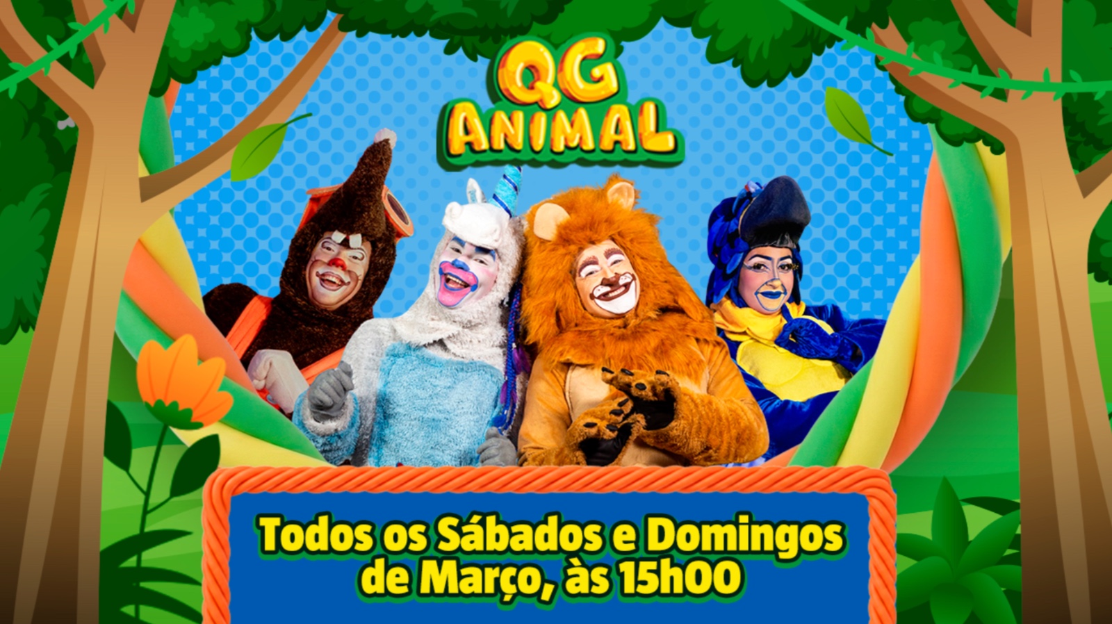 Durante oito apresentações especiais (7, 8, 14, 15, 21, 22, 28 e 29 de março de 2026), sempre às 15h, Léo Leão, Lala, Dipelúcia e Toupeira comandam uma aventura musical de aproximadamente uma hora, perfeita para crianças de todas as idades. Com mais de 15 milhões de visualizações no YouTube, o QG Animal convida o público para cantar, pular e dançar ao som de sucessos como “Paralisou”, “Bola de Sabão”, “Pega Pega”, “Sopra o Dodói”, além de canções do novo projeto “Músicas Para Brincar” como “Pirulito que Bate Bate”, “Caranguejo Não é Peixe” e “Trem Maluco”.